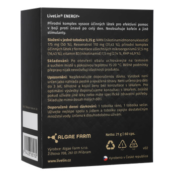Das Nahrungsergänzungsmittel LiveLin® Energy+ ist ein rein natürlicher Komplex aus Wirkstoffen, die die ordnungsgemäße Funktion des Nervensystems, der kognitiven Funktionen des Gehirns und des Energiestoffwechsels unterstützen.