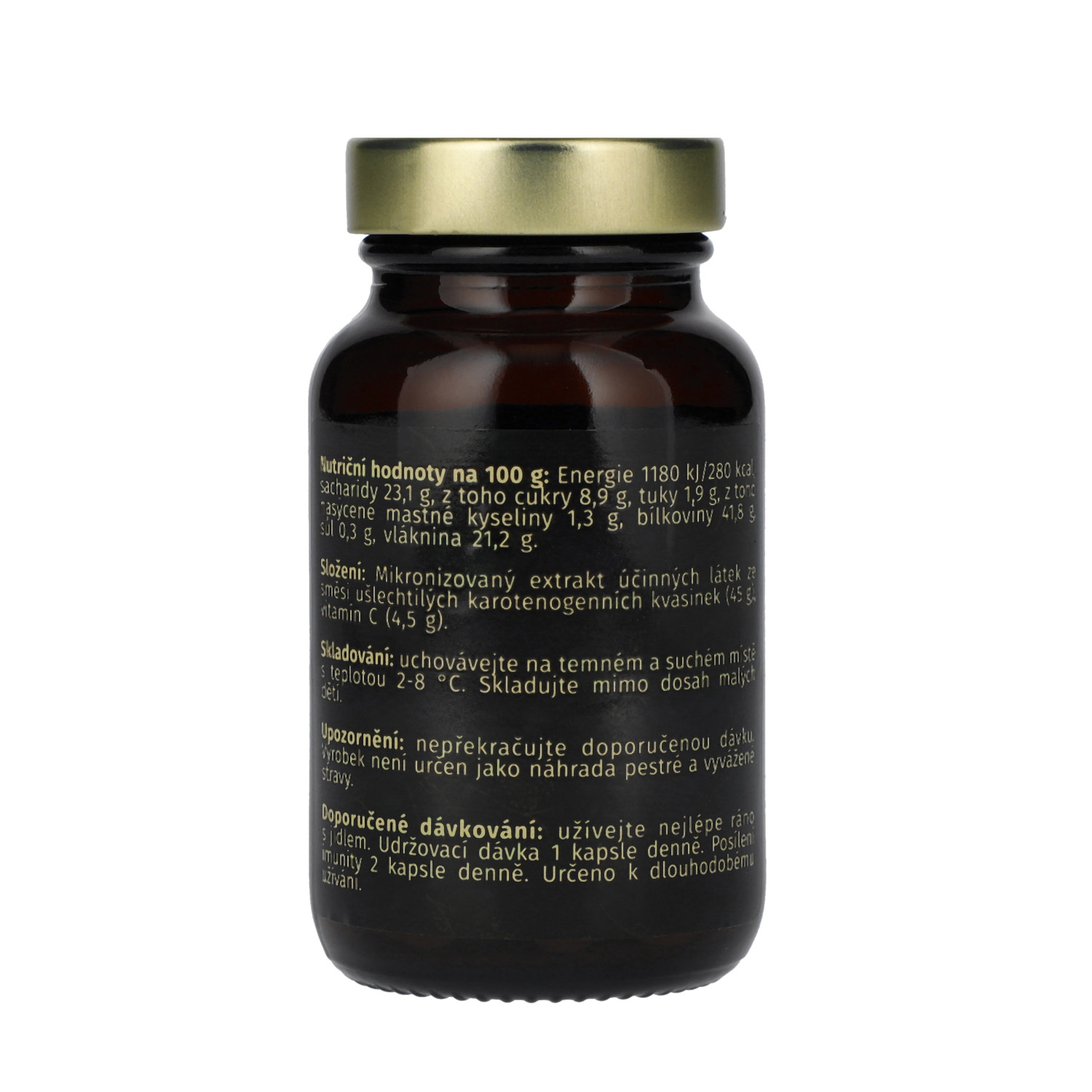 Wirkstoffe in natürlicher Form: Alpha- und Beta-Glucane, Carotinoide (Beta-Carotin, Torulen, Torularhodin), Coenzym Q10, NAD+, Ergosterol, Vitamine A, B, C, D, E, K, Spurenelemente, Mineralstoffe, essentielle Aminosäuren.