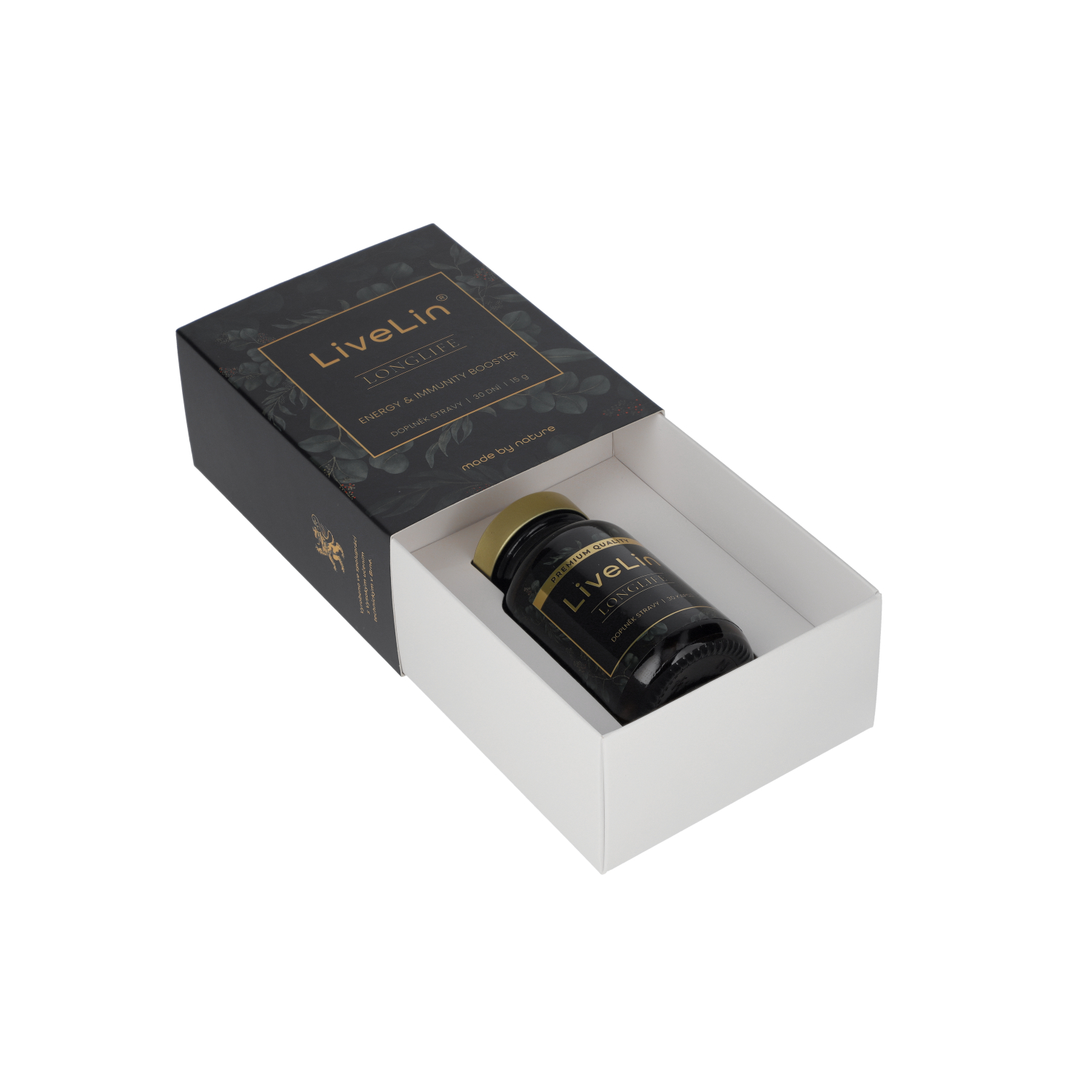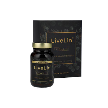 LiveLin® LongLife ist eine natürliche Biomasse, die Wirkstoffe enthält, die für ein langes Leben und eine dauerhafte Gesundheit unerlässlich sind und in einem harmonischen Verhältnis von einem einzigen Mikroorganismus produziert werden. Dieser fortschrittliche biotechnologische Prozess gewährleistet eine hohe Bioverfügbarkeit dieser Substanzen für den Körper. Im Gegensatz zu im Labor hergestellten Nahrungsergänzungsmitteln synthetischen Ursprungs mit minimalen Auswirkungen auf die Gesundheit.