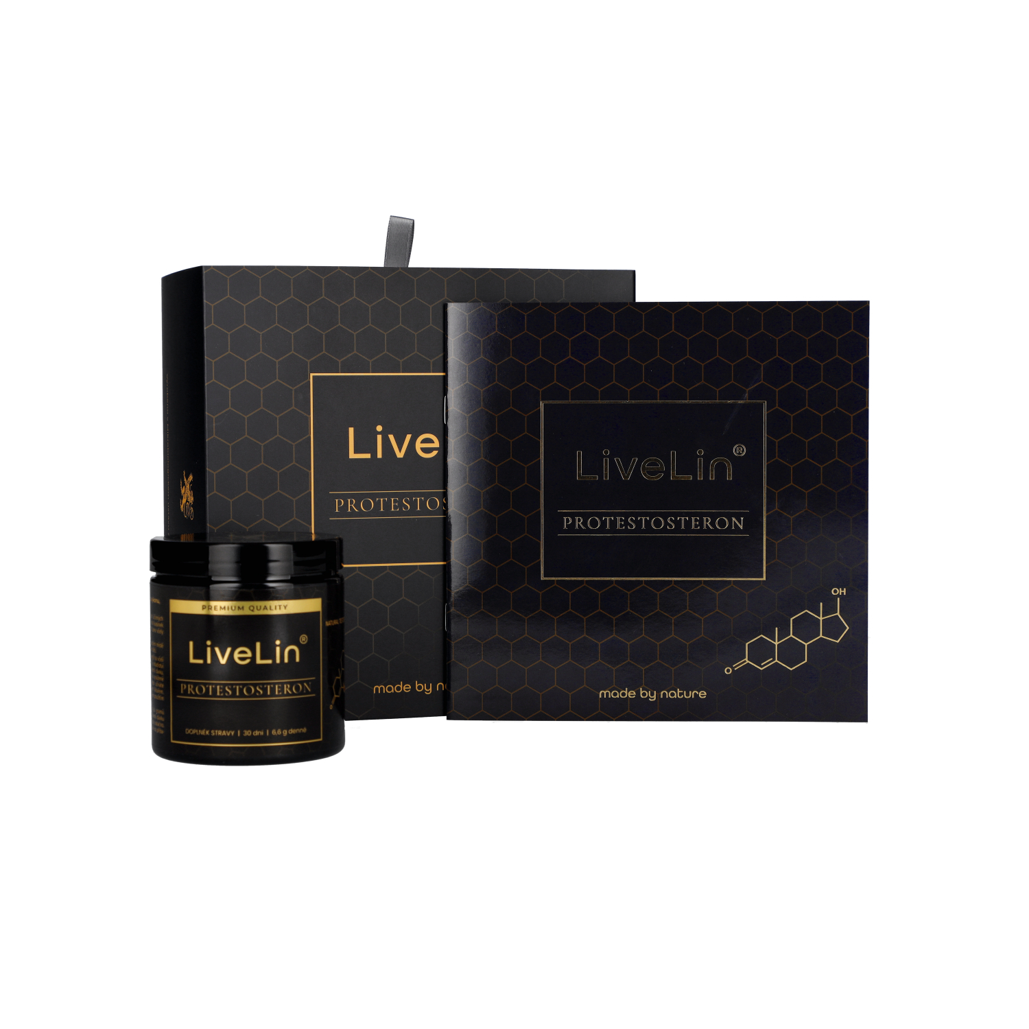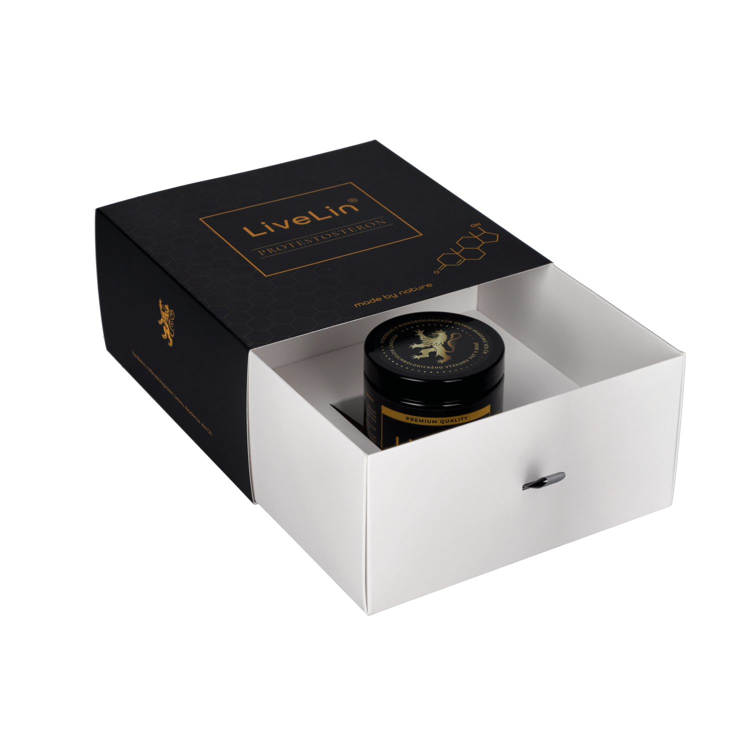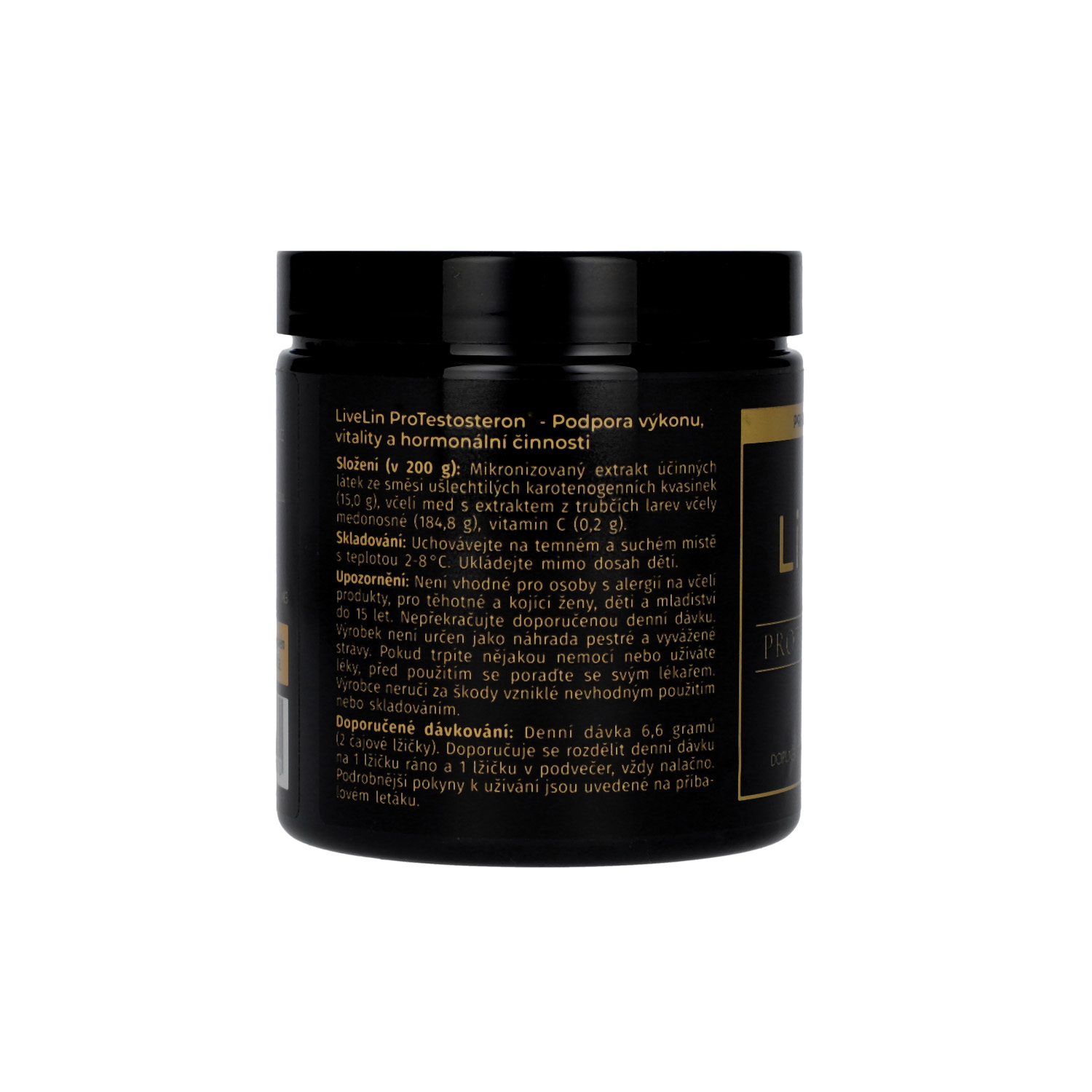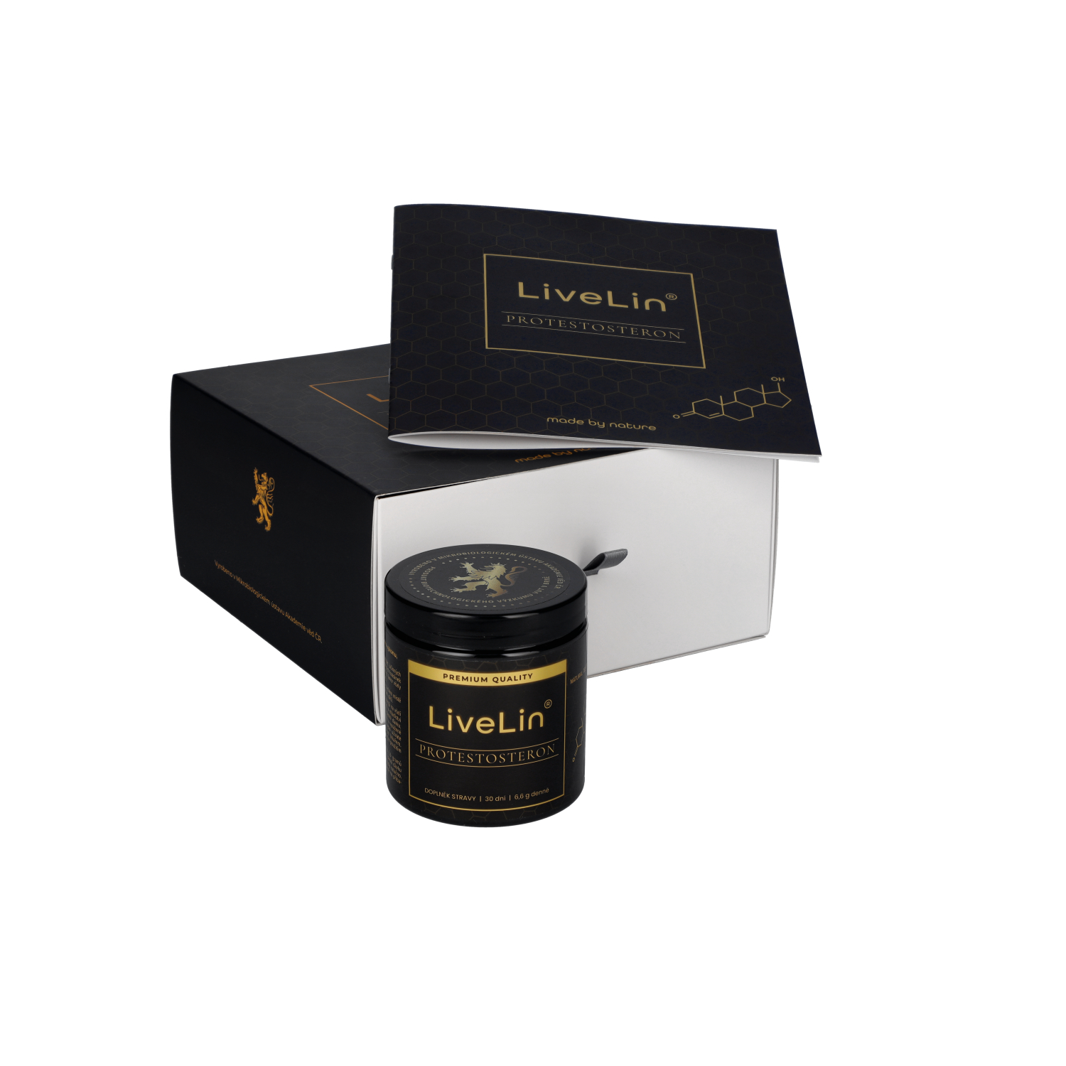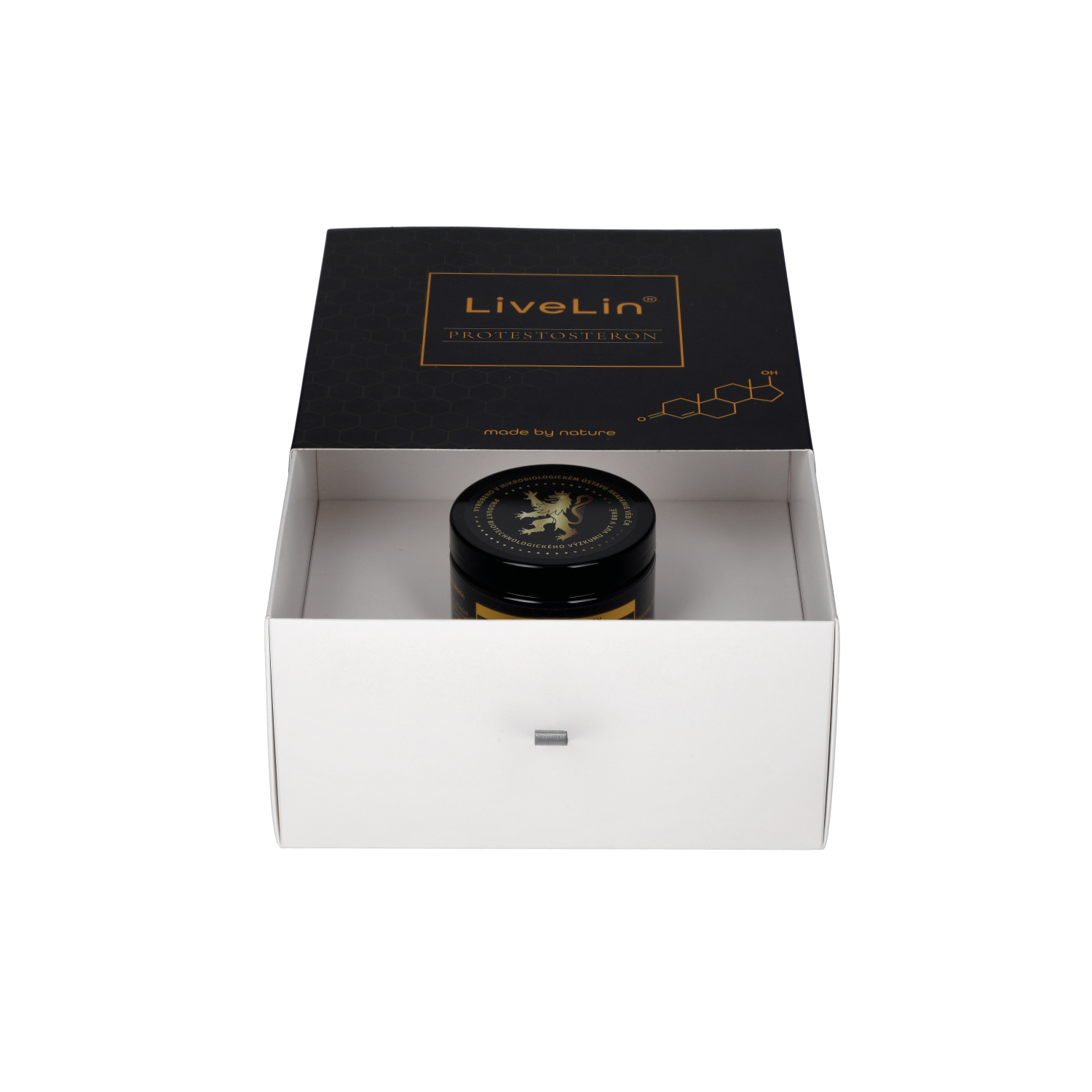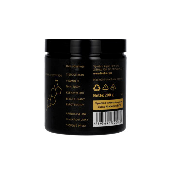 Das Nahrungsergänzungsmittel LiveLin® ProTestosterone ist eine rein natürliche Mischung aus gefriergetrocknetem Extrakt aus Honigbienenlarven (im frühen Stadium der Larvenentwicklung) und mikronisierter Biomasse, die durch einen biotechnologischen Fermentationsprozess mit Hilfe von Edelhefen hergestellt wird, um Wirkstoffe zu produzieren, die für Langlebigkeit und dauerhafte Gesundheit unerlässlich sind. Die Mischung wird in einer Honigemulsion aufbewahrt, die einen perfekten Schutz gegen den biologischen Abbau der Wirkstoffe bietet. Das Produkt enthält keine Zusatzstoffe, Farbstoffe, Aromastoffe oder Stabilisatoren.